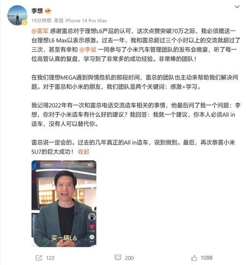 通过这一系列的真实爆料视频,我们不仅看到了李想作为企业家的风采,还了解到了他的生活点滴。这些视频,无疑为粉丝们提供了一个近距离接触李想的机会。让我们一起期待,李想和他的团队在未来能够带给我们更多惊喜吧!